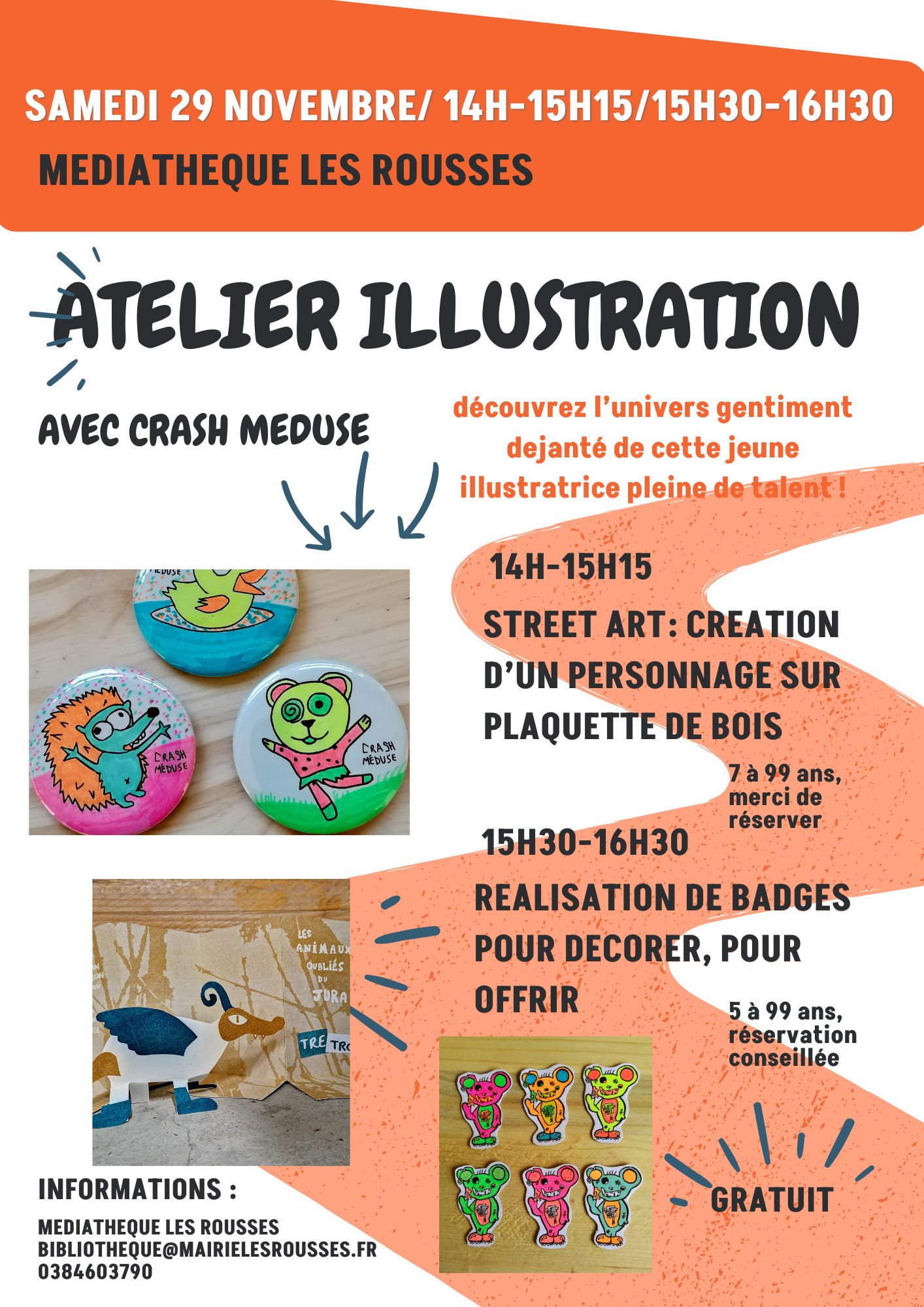 De 14h à 15h15, atelier type Street Art, crée ton personnage déjanté sur planchette en bois, Tout public à partir de 7 ans, il est préférable de réserver