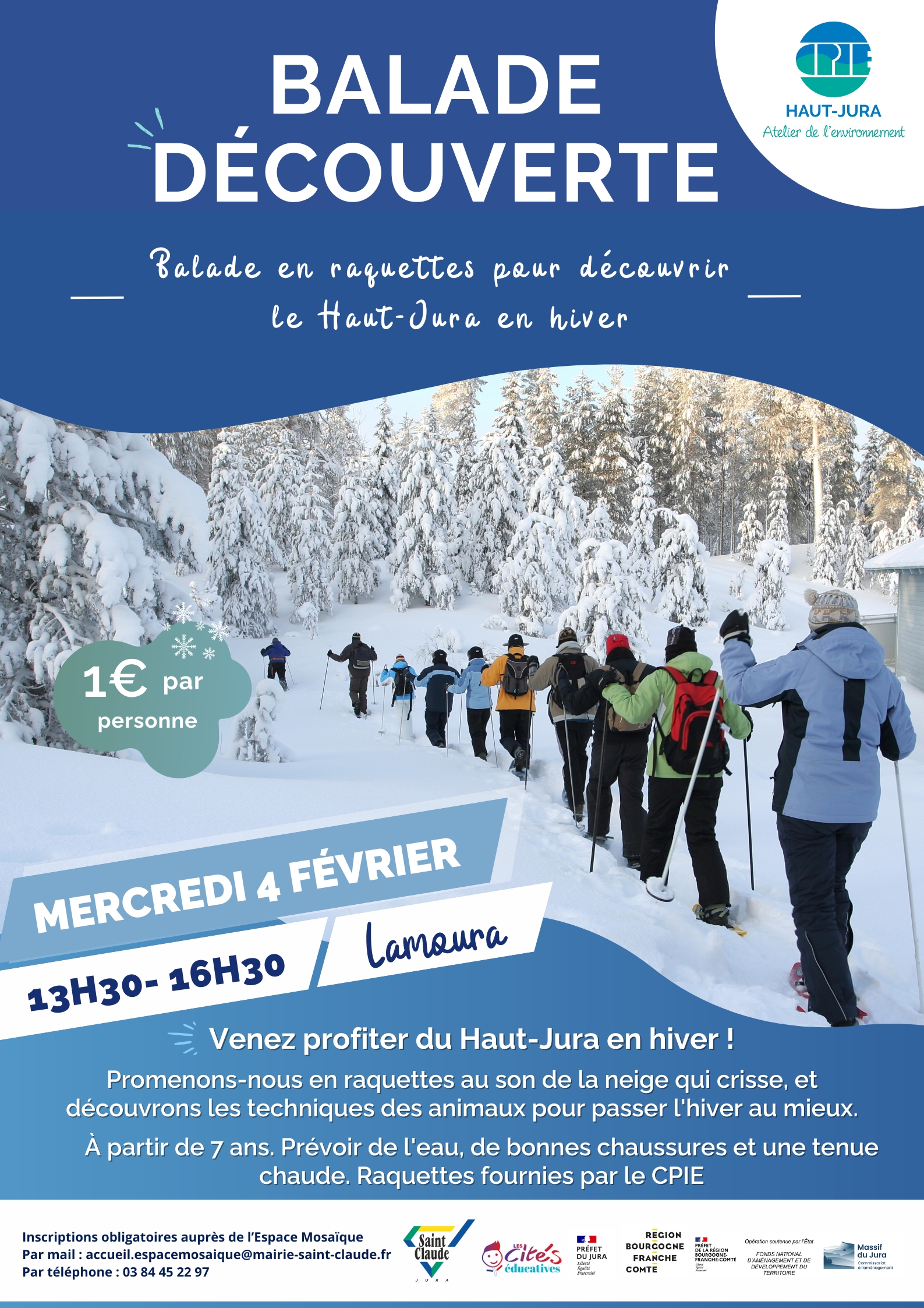 ??TARIF : 1€ par personne - RÉSERVATION OBLIGATOIRE auprès de l'Espace Mosaïque par téléphone au 03 84 45 22 97 ou par mail à accueil.espacemosaique@mairie-saint-claude.fr