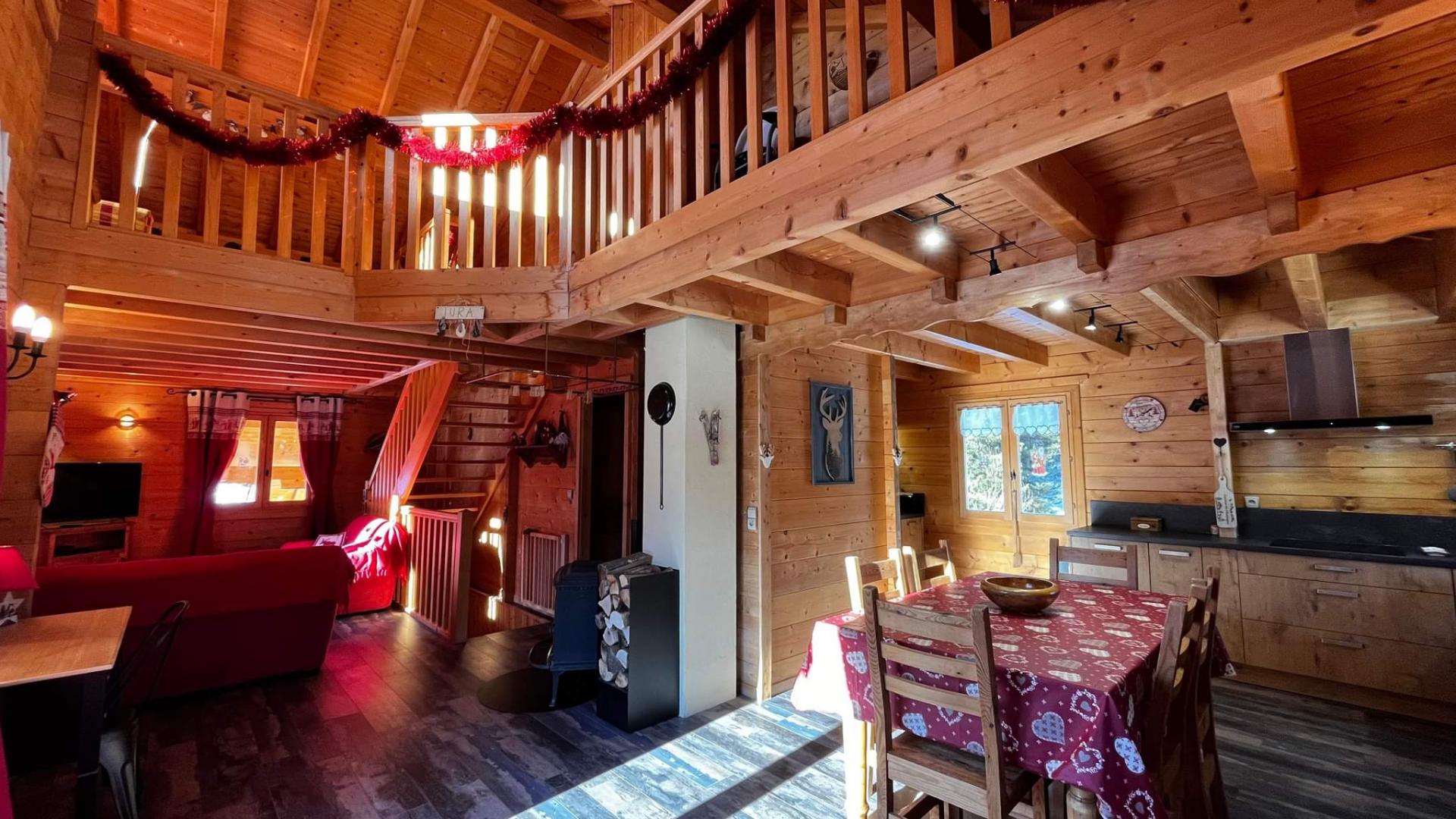 string(733) "Chalet indépendant, entrée au rez de chaussée, à l'étage: séjour-salon, poêle à bois, lecteur DVD, cuisine intégrée avec 1 senseo et cafetiere filtre, congélateur, salle d'eau, wc indépendant, ch1 : suite parentale 1 lit 2 pl avec salle d'eau et wc attenants ch2: 1 lit 2 pl. Au 2ème étage: mezzanine avec coin-détente et canapé, ch3: 2 lits 1 pl, chauffage électrique, salon de jardin, barbecue, balcon-terrasse, terrain attenant, abri voiture. Toutes charges comprises. Possibilité 2 lits 1 pl supplémentaires dans la 3ème chambre. Équipement Bébé. Les lits sont équipés de couettes et oreillers : prévoir les housses adaptées. Supplément de 11€/pers/nuit au delà de 6 pers. Parking privé sur place."