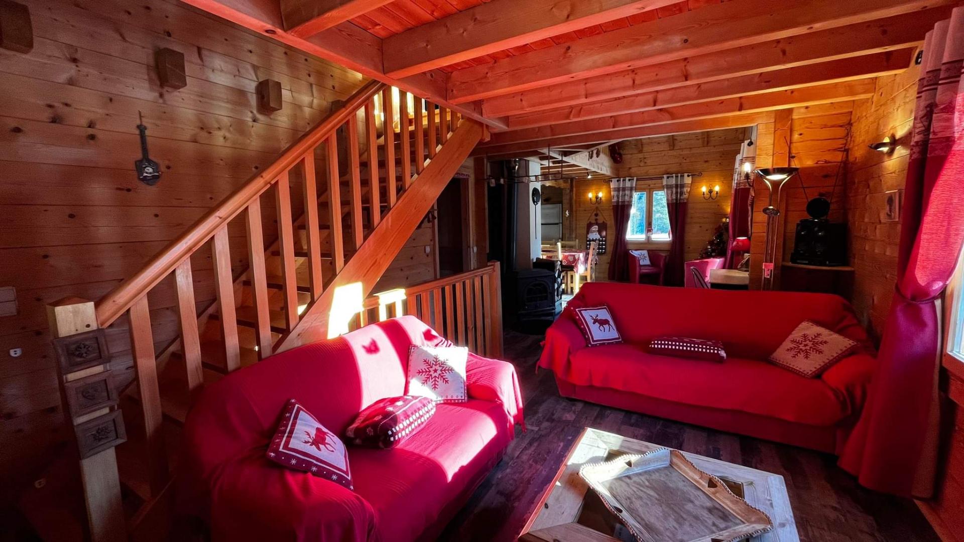 Chalet indépendant, entrée au rez de chaussée, à l'étage: séjour-salon, poêle à bois, lecteur DVD, cuisine intégrée avec 1 senseo et cafetiere filtre, congélateur, salle d'eau, wc indépendant, ch1 : suite parentale 1 lit 2 pl avec salle d'eau et wc attenants ch2: 1 lit 2 pl. Au 2ème étage: mezzanine avec coin-détente et canapé, ch3: 2 lits 1 pl, chauffage électrique, salon de jardin, barbecue, balcon-terrasse, terrain attenant, abri voiture. Toutes charges comprises. Possibilité 2 lits 1 pl supplémentaires dans la 3ème chambre. Équipement Bébé. Les lits sont équipés de couettes et oreillers : prévoir les housses adaptées. Supplément de 11€/pers/nuit au delà de 6 pers. Parking privé sur place.
