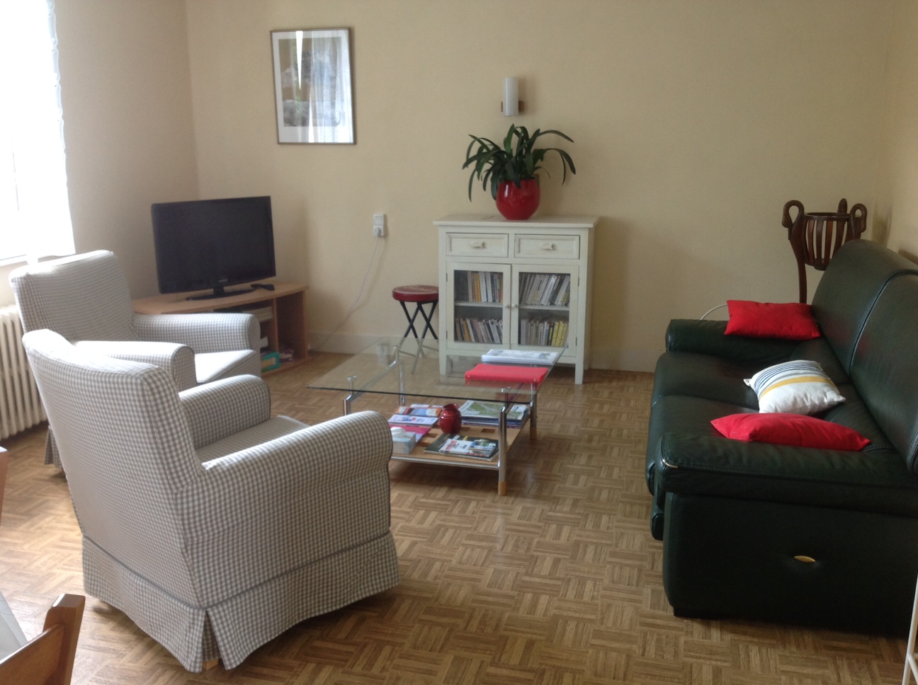 Logement au 1er étage. Cuisine, séjour, une première chambre à 2 lits et une chambre avec 1 lit 2 places, salle de bains et wc séparés, terrain attenant non clos, balcon, salon de jardin. Chauffage central. Toutes charges comprises.