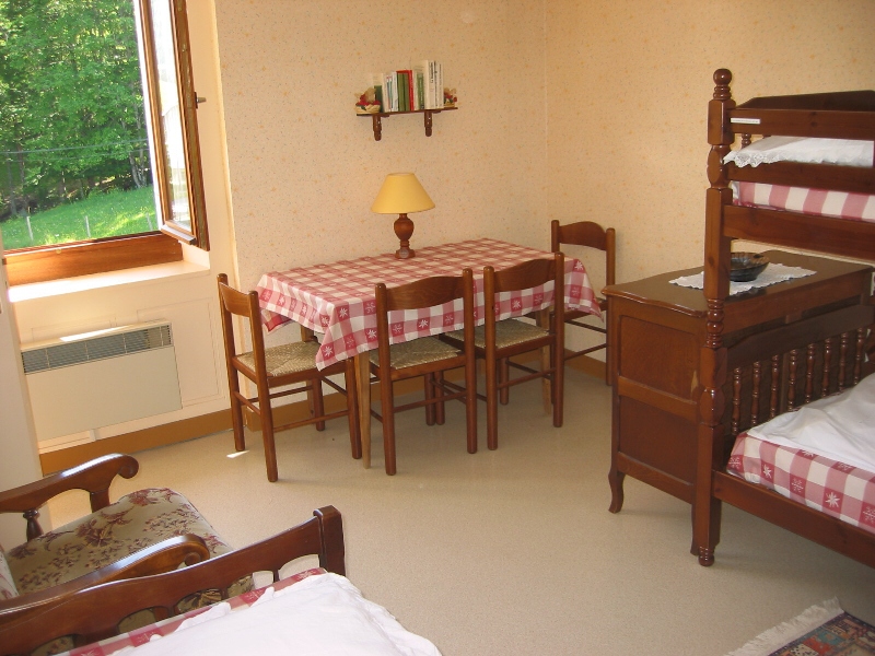 string(503) "Appartement confortable idéalement situé à proximité des pistes de ski et de nombreux sentiers de randonnée. Au 2ème étage : une pièce à vivre avec cuisine, espace repas et coin détente, une 1ère chambre avec 1 lit en 140 et une 2ème chambre avec un lit 1 place en 100x190 et 2 lits 1 place superposés. Salle d'eau avec douche, 2 lavabos, wc séparés. Terrain non clos autour du gîte à votre disposition avec salon de jardin. Garage privatif. Parking sur place - volets dans les chambres"