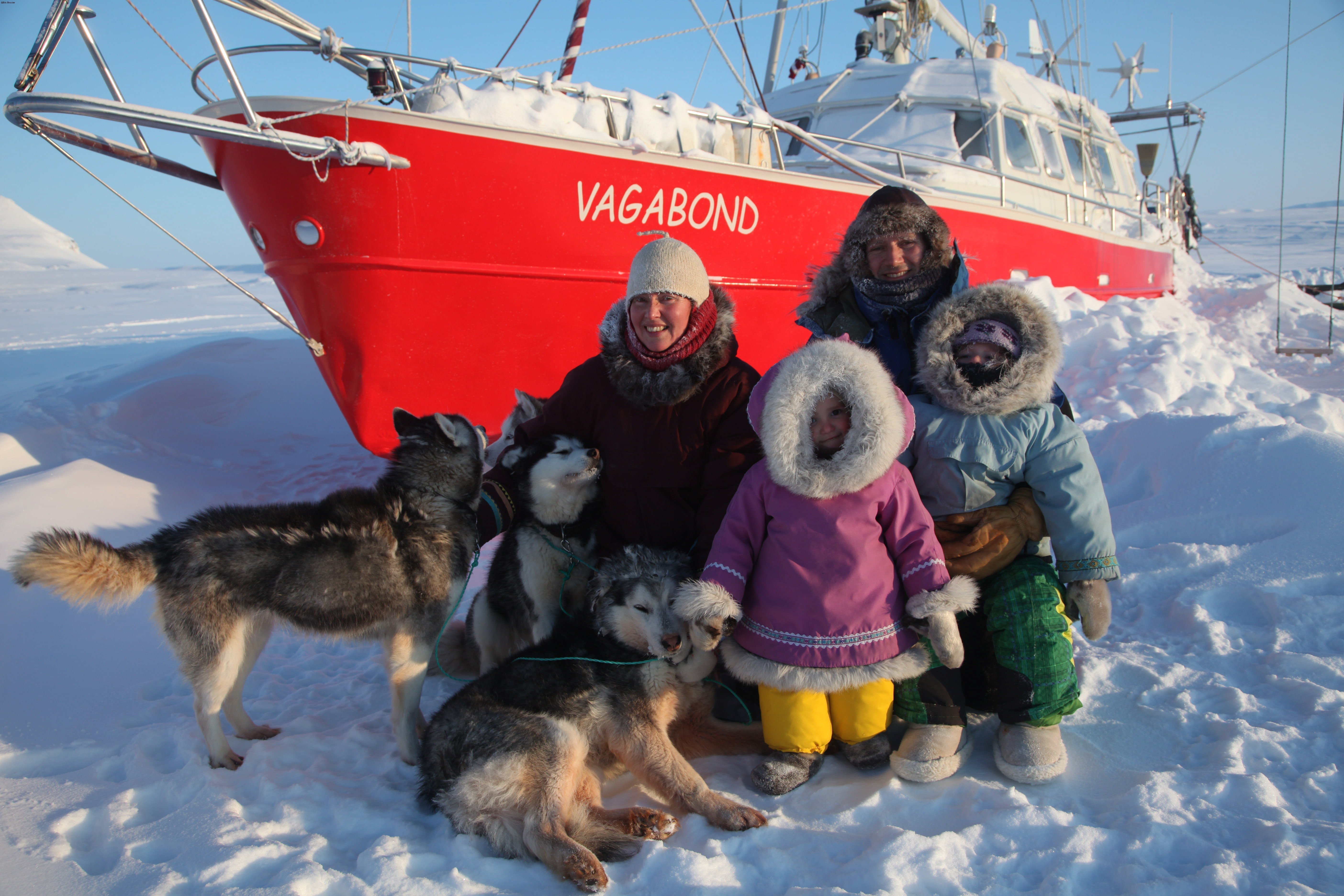 Éric, France et leurs deux filles explorent les régions polaires depuis plus de vingt- cinq ans. Au fil de navigations estivales et d’une douzaine d’hivernages passés au plus près des communautés inuites, ils ont mis leur voilier polaire Vagabond au service d'une soixantaine de programmes scientifiques.