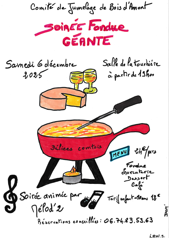 Venez nous rejoindre dans une ambiance chaleureuse Samedi 06 Décembre 2025, à 19h, salle de la Tourbière à Bois d'Amont. Soirée dansante animée par Mélod'2 .
